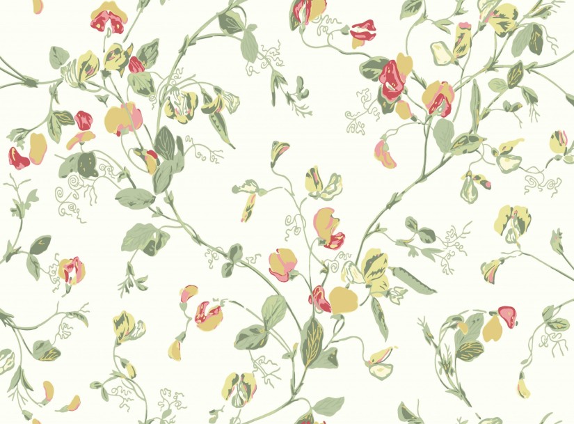 Mėgstamo dėl savo grakščių ir įmantrių žiedų, kvapiojo pelėžirnio raštas – dažnai pasikartojantis interjero namų „Cole & Son“ motyvas. Gaivaus kvapo, vešlių besivejančių gijų Lathyrus odoratus dažnai rasime Britų salų ir kitų pasaulio kampelių soduose. Naujos, šiuolaikiškos paletės – ryškiai rausvi ir purpuriniai atspalviai melsvai žaliame fone, ochros ir rausvi atspalviai pergamentą primenančiame fone, rudeniniai, rausvi ir alyvuogių tonai kreminiame fone bei žydri ir pilkai žali atspalviai baltame fone – atspausdintos naudojant paviršinės spaudos techniką, kad kiekvieną šio tradicinio rašto lapelį būtų galima paliesti.\r\n