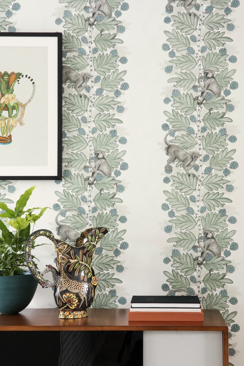 Akacijos medis ir jo ryškiai geltoni „pūkuoti" žiedai yra įprastas reginys Afrikoje ir sukelia šiltus prisiminimus apie „Ardmore" įkūrėją Fee Halsted. Vaikystėje ji visada buvo apsupta beždžionių, šių juokingų, pokštus krečiančių gyvūnų, pilnų sąmojo ir sumanumo, kurios užėmė ypatingą vietą jos širdyje ir savo ruožtu įkvėpė šiems stulbinantiems naujiems „iškalbingiems" tapetams. Sukurti siekiant sudaryti plačių juostų efektą, šie tapetai yra subtilūs, tačiau suteiks ryškumo, ypač su dviem mūsų žavingais išdaigininkais.