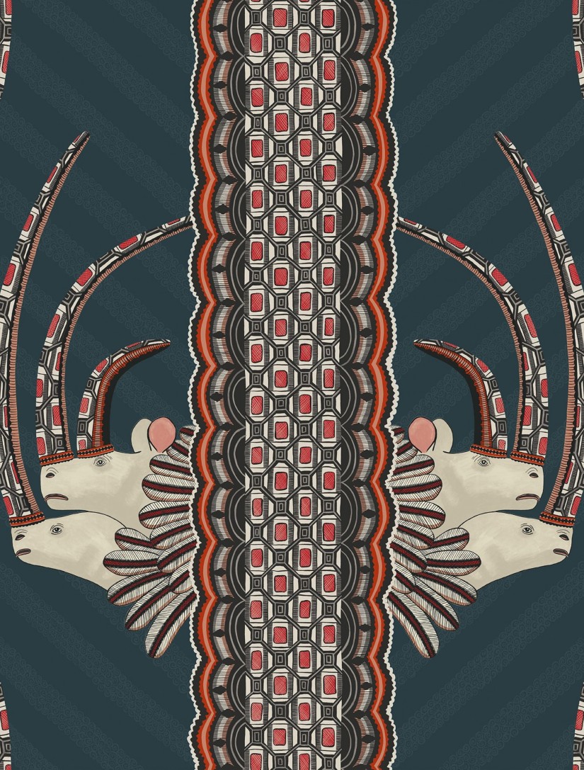 Pavadintas vieno geriausių „Ardmore" dizainerių Jabu Nene vardu, šis dizainas įkvėpimo semiasi iš nuostabių skulptoriaus Somandla Ntshanlintshali sukurtų indus apraizgiusių skulptūrinių raganosių. Po to tie puodai akinančio ryškumo spalvomis buvo sudėtingai ištapyti pačios Jabu Nene, ir dabar tai yra vienas mėgstamiausių firminis „Ardmore" modelis. Mūsų „Cole and Son" menininkai panaudojo šių puodų ženklus kurdami nuostabų vertikalių gyvų juostų dryžuotą audinį, iš kurio žvilgčioja didingų baltų raganosių su puošniais ragais ir plunksnomis pora. Šie tapetai pasižymi tikra Afrikos dvasia, o jų raštai primena Zulu krepšelio pynimą. Tapetai siūlomi penkių įspūdingų spalvų derinių, tarp kurių elegantiški juodi, balti ir pilki neutralūs atspalviai šalia praktiškų alyvų, tabako ir tamsiai mėlynų bei oranžinių tonų.