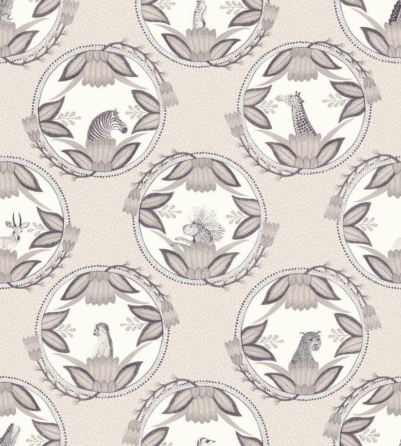 \n \n \n Tapetai „Ardmore Cameos“ yra labai asmeninis lėkščių kolekcijos, kuri iš pradžių buvo sukurta kaip vestuvinė dovana „Ardmore draugui". Šie puikūs kartušo tapetai su kiekvienu gyvūno portretu, tarp kurių gana išdykęs zebras ir juokingas leopardas, neryškiame žirafos dėmių fone, yra keturių spalvų derinių – neryškių alyvuogių, pilkos, blyškios rudai žalios ir ryškios juodos bei baltos spalvų. \n \n \n \n \n \n \n \n \n\n
