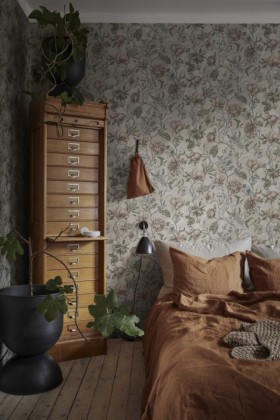 Laukinis ir tankus šeivamedžio nėrinys apgaubia kambarį minkštais sluoksniais, suteikdamas namams nesenstančios formos ir šiuolaikiškumo. Dizainas: Sara Bergqvist\r\n