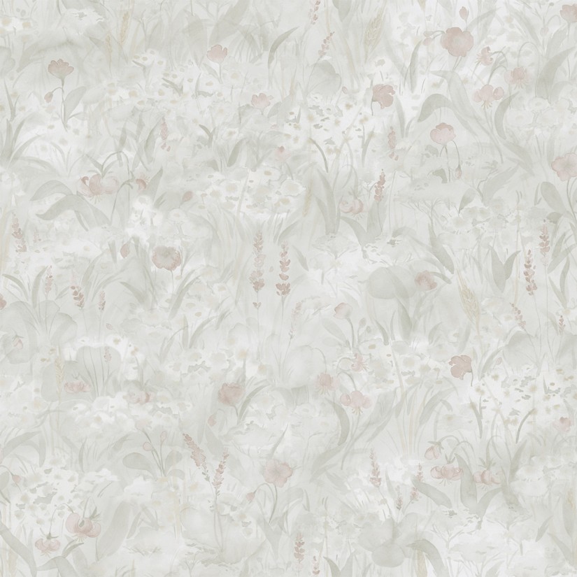 Akvarele tapytos gėlės susilieja į vientisą paveikslą sušvelnindamos vasaros pievos aguonų ir smilgų kontūrus. Dizainas: Sara Bergqvist