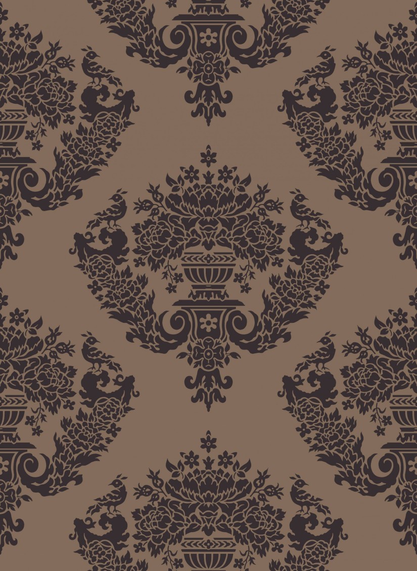 Klasikinio stiliaus tapetai su vidutinio dydžio vazų ir gėlių girliandų raštu šilką primenančiame muaro fone nuspalvinti blyškiu pilkšvu, melsvai žalsvu, rudai pilku atspalviais. Taip pat galite rinktis juodą raštą vario spalvos fone. Galite klijuoti šalia derančių tapetų „Moire“ (13051–13054)