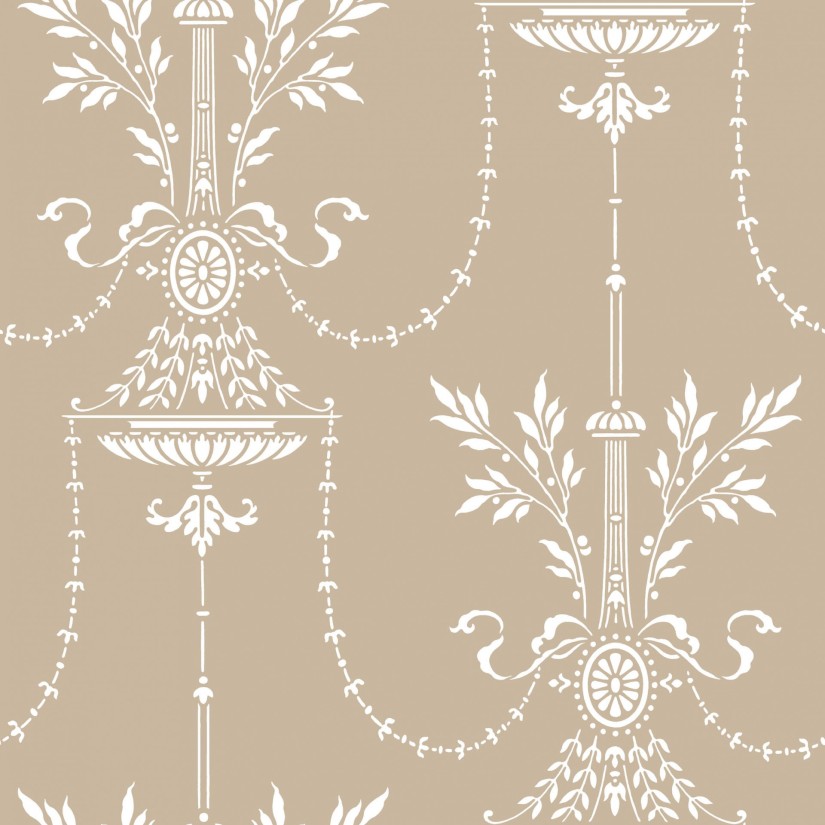 Vieni populiariausių dizaino studijos „Cole & Son“ tapetų – klasikinis, kuklus, lengvas raštas. Nuspalvintas baltu ir rusvai gelsvu, auksiniu ir juodu, auksiniu ir rudai raudonu, baltu ir balkšvu, auksiniu ir melsvai žalsvu bei baltu tonais.