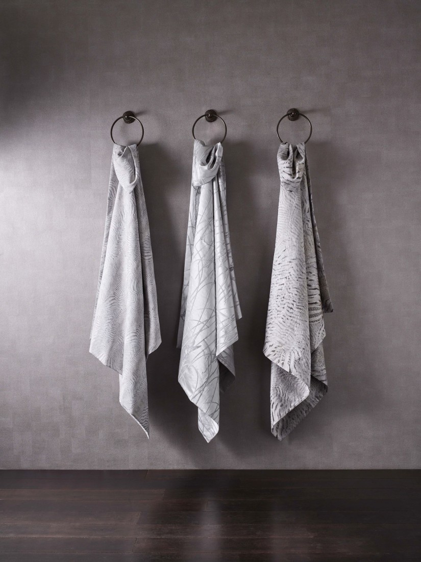 Žakardo audinys vidutinio dydžio raštu kontrastuoja su lininiais ir ypač blizgančiais siūlais, o jį išbaigia kačių pėdelių raštas su pereinančiomis spalvomis.