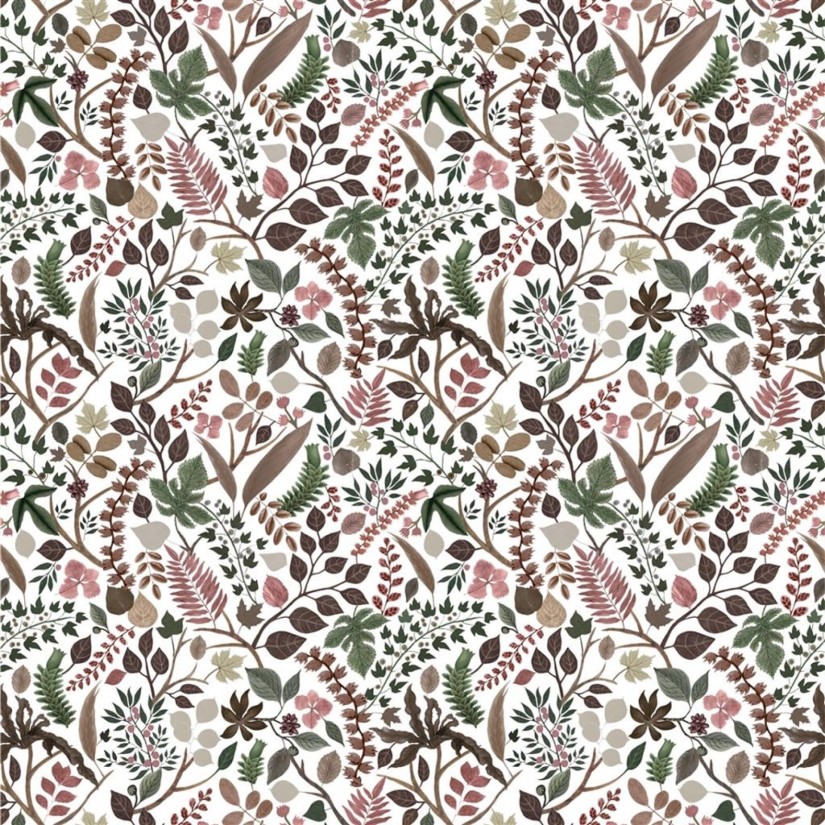 Christian Lacroix įkvėptas turtingų, sodrių atspalvių botaniškas fantastinio miško lapų ir paparčių šakų raštas švariame, baltame fone. Šis skaitmeniniu būdu ant švelnaus medvilnės satino išspausdintas raštas idealiai tinka užuolaidoms, romanetėms, pagalvėlėms ir lovatiesėms. Galimi du spalvų deriniai.