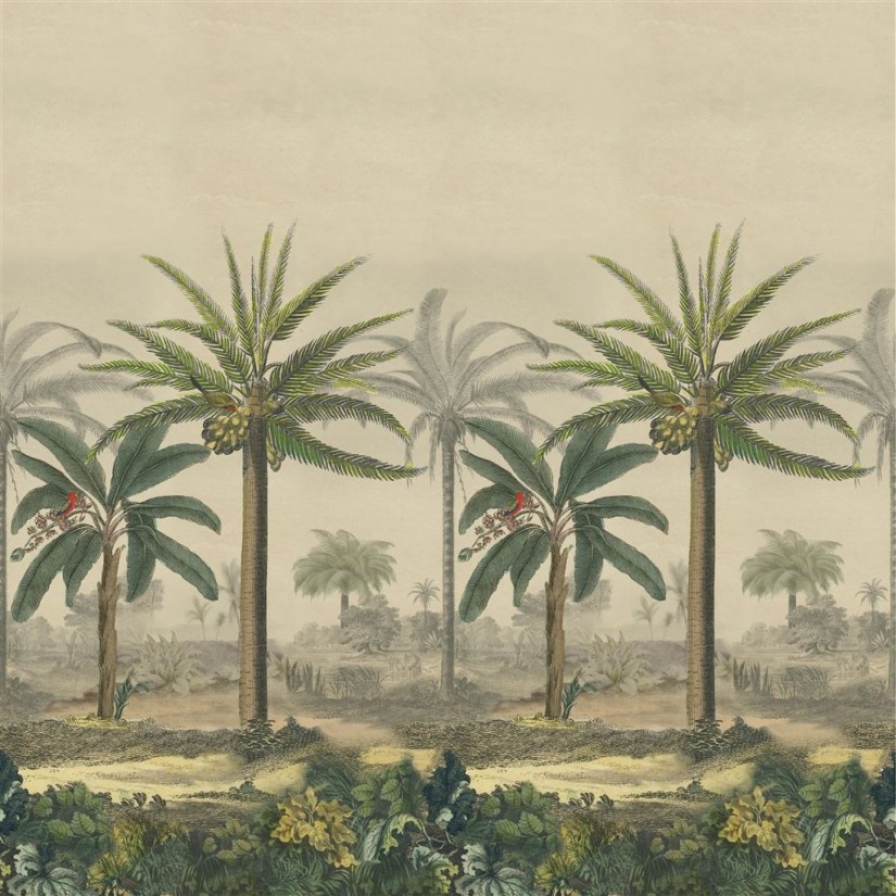 Įspūdinga menininko John Derian kompozicija vaizduojanti egzotiškas palmes. Gali būti derinama su Palm Trail Scene 2.