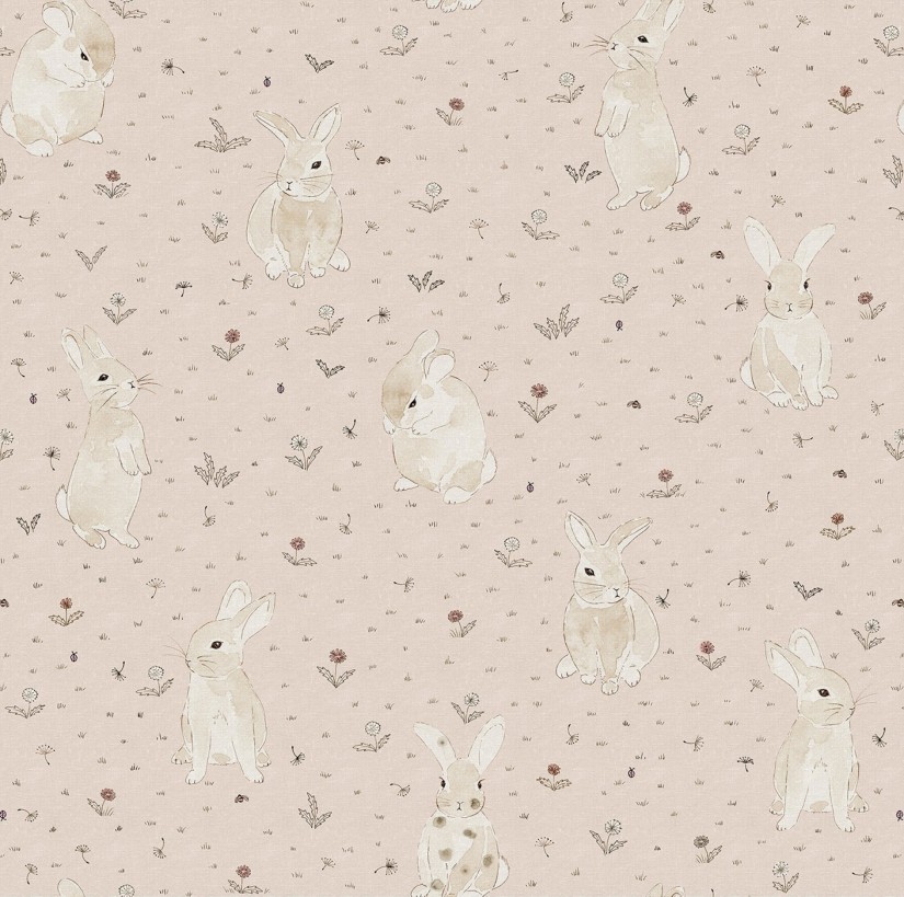 Smalsus zuikis. „Bunny Field“ –tai svajinga akvarelė, vaizduojanti tarp sultingų kiaulpienių lapų ir boružėlių žaidžiančius mielus zuikius. Pats mieliausias vaikų kambario akcentas.