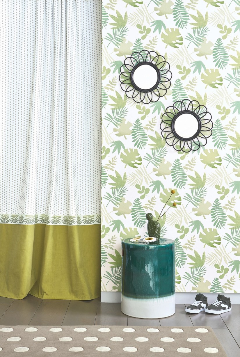 Iš šių kerinčių tapetų šelmiškai šypsosi pieštos beždžionėlės mielais pūkuotais snukučiais. Rėžiai, ant kurių įsitaisiusios beždžionėlės, kartojasi, taip sukuriant horizontalias juostas. Šios išdykėliškos būtybės tik ir laukia, kol prasidės išdaigos.