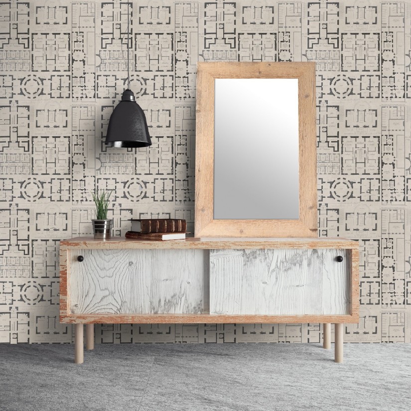 Prabangių Prancūzijos gyvenamųjų rajonų architektūrinės schemos.   DĖMESIO! MINDTHEGAP tapetai parduodami pakuotėmis. Vienoje pakuotėje yra 3 juostos, kurių išmatavimai 52 x 300 (h) cm, jomis padengiamas 4,65kv.m plotas.