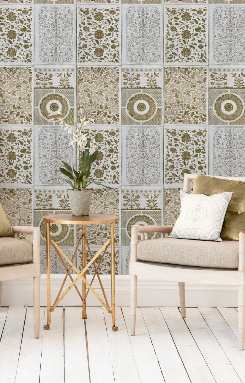 DĖMESIO! MINDTHEGAP tapetai parduodami pakuotėmis. Vienoje pakuotėje yra 3 juostos, kurių išmatavimai 52 x 300 (h) cm, jomis padengiamas 4,65kv.m plotas.