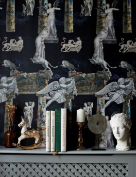 Tapetų šedevras su stulbinančiais Rojaus paukščiais idiliškame fone, kuriame pilna žydinčių šakų. Gausiai iliustruotas spalvingas raštas su gražiomis detalėmis yra sukurtas trijuose ritiniuose. Galima rinktis iš dviejų skirtingų spalvų variantų – blizgios žalios ir pilkos spalvos, taip pat kaip namams skirtą audinį, atspaustą ant angliško medvilninio aksomo. \n