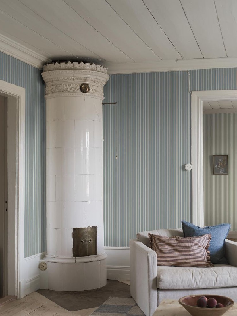 Šie „Pärlband“ tapetai atsiskleidžia prislopinta mėlyna ir ruda spalvomis šviesiame smėlio spalvos fone, paryškinti tamsiai mėlynais taškais. Šis raštas sukurtas šiuolaikiškai pažvelgus į švedų tradicinius dizainius. Juostelės primena perlų gijas ir suteikia sienoms subtilaus sodrumo.