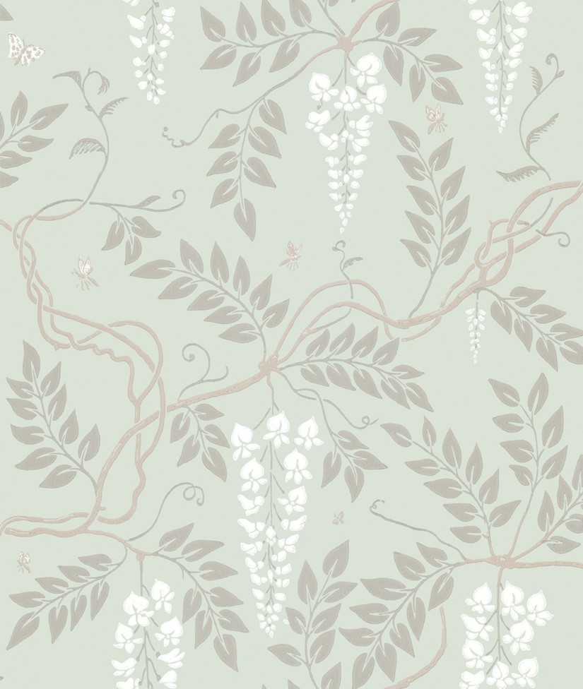 Populiarūs tapetai „Egerton“ atnaujinti, nuspalvinant naujomis spalvomis šias grakščias kininės visterijos šakeles, nupieštas kaolino atspalvio fone. Balti ir kreminiai, šviesiai violetiniai ir ryškiai raudoni žiedai puikuojasi švelniai melsvame, žydrame, subtiliai neutralaus atspalvio ir įspūdingos nakties mėlynumo spalvos fone.
