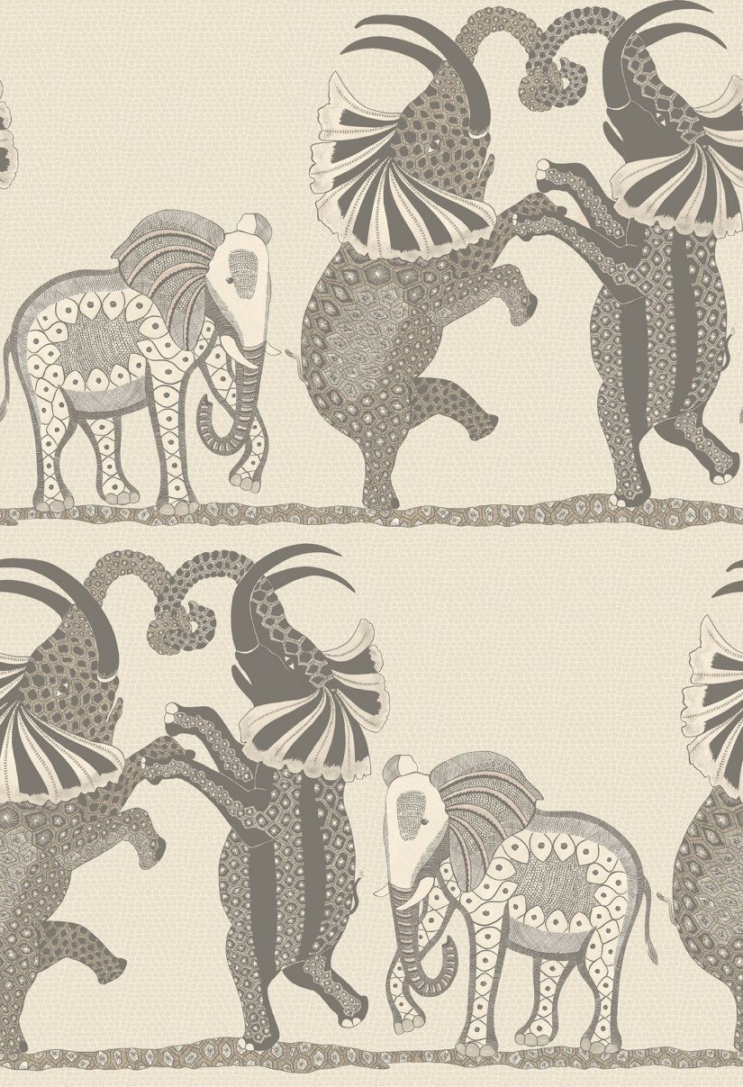 Šiuose gražių raštų tapetuose vaizduojamas dramblių trejetas, horizontaliai šokantis Afrikos lygumose. Sudėtingai sukurti, jie yra paimti iš Zinhle Nene nutapytos didelių dekoruotų urnų serijos, kuri užima garbingą vietą „Ardmore" muziejuje. Spalvos išlaikytos gana paprastos todėl, kad buvo norima parodyti smulkius rankomis tapytus elementus – medžio anglies, smėlio ir akmens spalvos suteikia švelnų margą foną juodai ir baltai, neryškiai tamsiai raudonai ir rūdžių bei šaltos kreidos pilkumo spalvoms.