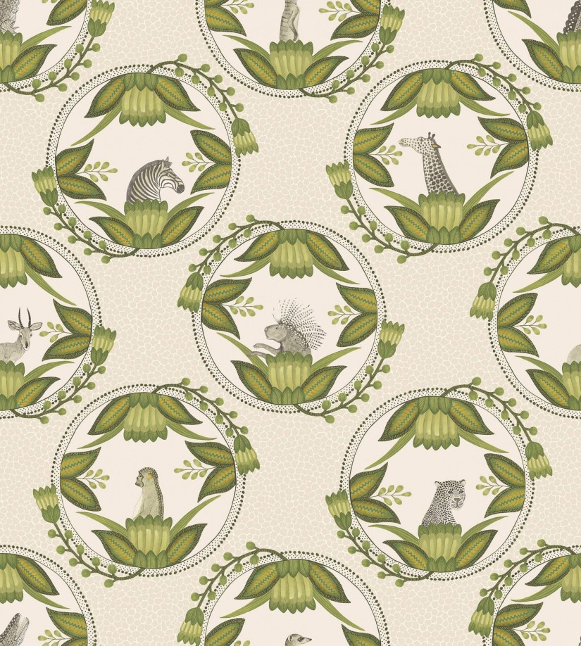 Tapetai „Ardmore Cameos“ yra labai asmeninis lėkščių kolekcijos, kuri iš pradžių buvo sukurta kaip vestuvinė dovana „Ardmore draugui". Šie puikūs kartušo tapetai su kiekvienu gyvūno portretu, tarp kurių gana išdykęs zebras ir juokingas leopardas, neryškiame žirafos dėmių fone, yra keturių spalvų derinių – neryškių alyvuogių, pilkos, blyškios rudai žalios ir ryškios juodos bei baltos spalvų.