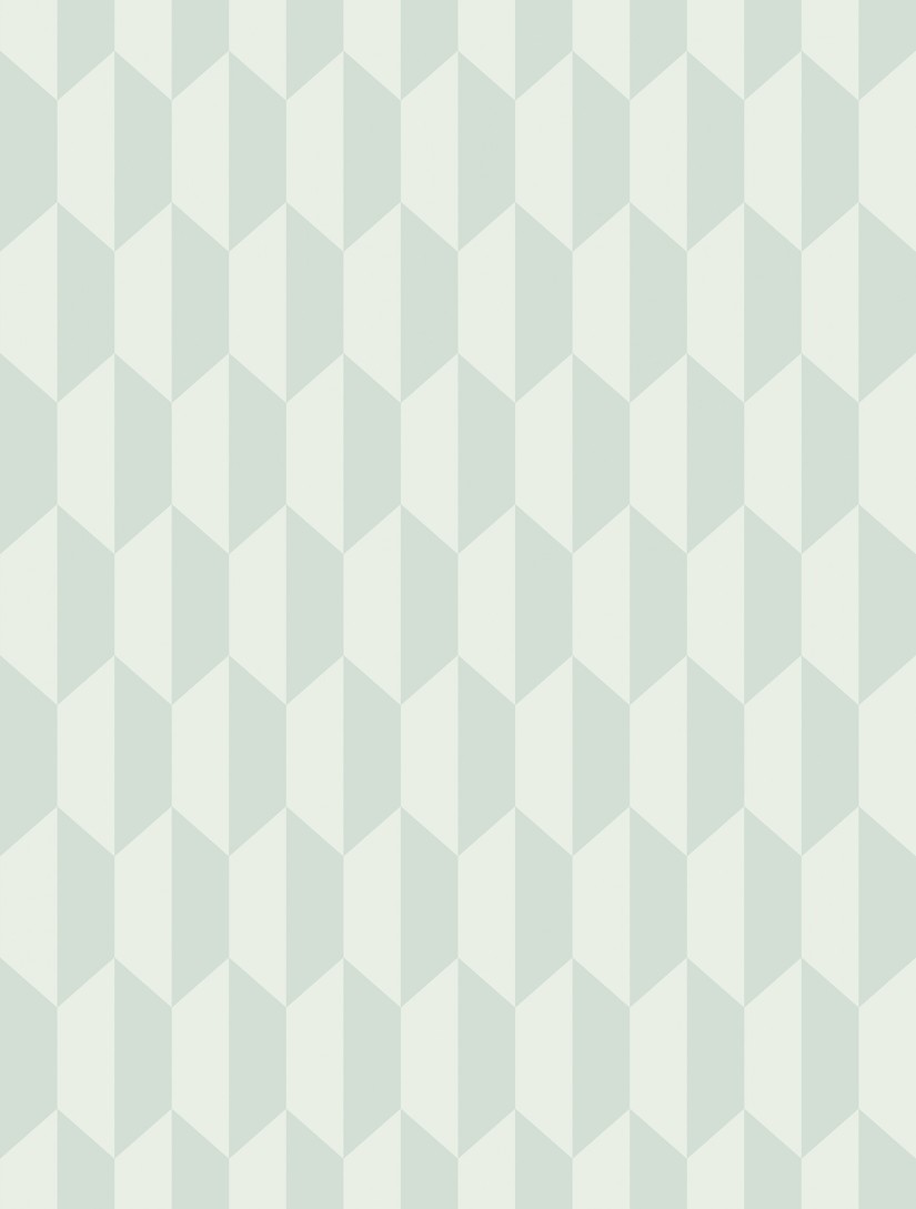 Šiaurės Afrikoje esančio Maroko kiemų įkvėptas geometrinis raštas „Petite Tile“, smulkesnė tapetų „Tile“ versija, nuspalvintas švelniais moderniais melsvu, pilkšvu, melsvai žalsvu ir pergamento atspalviais ir ryškiais, aštriais anglies ir bronziniais tonais.