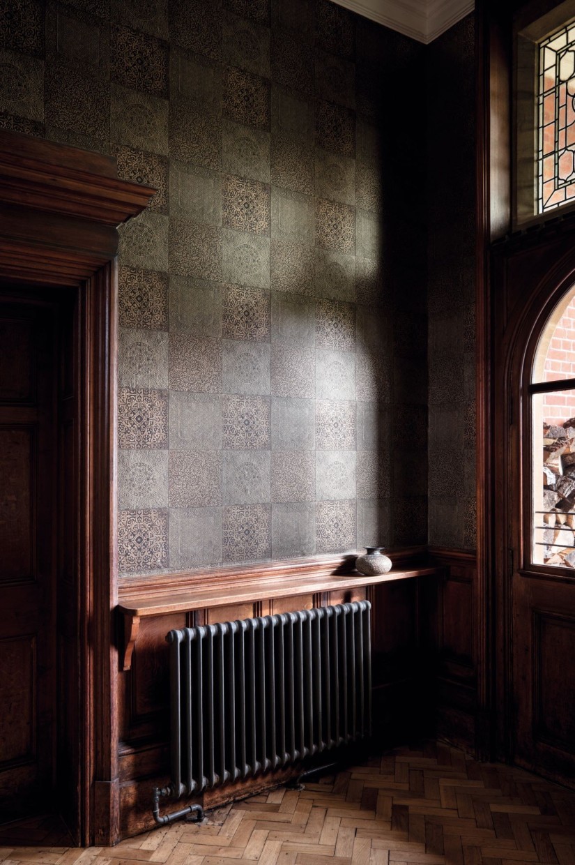 Blizgūs tapetų „Bazaar“ tonai paliesti šviesos elegantiškai švyti, atspindėdami reljefinėms plytelėms įprastą subtilumą ir judesį. Sendinimas kiekvienai plytelei įkvepia gyvybės, o alavo, sidabriškai auksinis ir bronzinis atspalviai suteiks aplinkai persiškos šilumos.