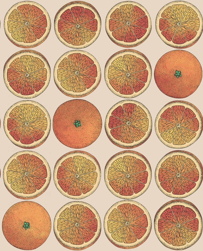 Ryškių Viduržemio jūros citrusinių vaisių pasikartojimai, matomi „Arance", yra produktyvi Fornasetti archyvo tema, pirmą kartą pasirodžiusi ant padėklo „Fette d’arancia“ XX-ojo amžiaus 6-ame dešimtmetyje, ir dar kartą, kaip grafinis audinių raštas, panaudota 10-ame dešimtmetyje Barnaba Fornasettiin. Šis organiškas kūrinys buvo sukurtas panaudojus tikroviškų raudono apelsino, oranžinės ir citrinos spalvų paletę ant efektingai kontrastuojančio kreidinės jūros putos ir akmens, taip pat prabangaus rašalo spalvų pagrindo.