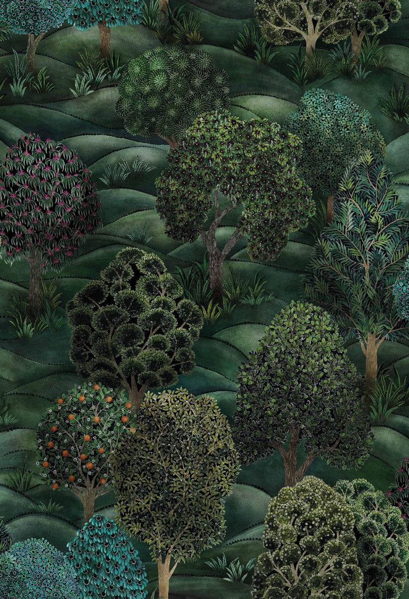 Nenuostabu, kad miškai plačiai aprašomi tiek folklore, tiek literatūroje. Jausmas, kad kiek akys užmato esi apsuptas medžių ir krūmų, sukelia nuostabą. Tas jausmas perkeltas į šiuos tapetus, kuriuose šviesos ruožai skverbiasi pro rūpestingai ranka išpieštų fantastinių medžių šakas, o miško paklotė skleidžia šilumą ir jaukų kvapą iš vaikystės prisiminimų.