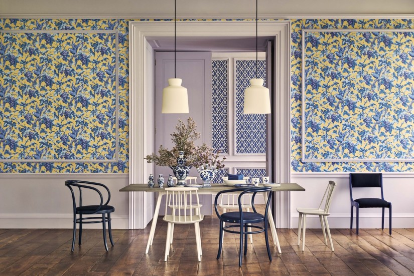 Nuostabūs egzotiški ir sodrūs tapetai „Woodvale Orchard“ yra atkurta „Cole & Son“ archyvo kompozicija, kurio originali versija ten vis dar saugoma iki šiol. Plunksnuotos papūgos tupi tarp vešinčių lapų ir saulėje prinokusių vynuogių. Tapetų paviršius išmargintas taip, kad šiuolaikinė reprodukcija išsaugotų tradiciškai marginamas faktūras.