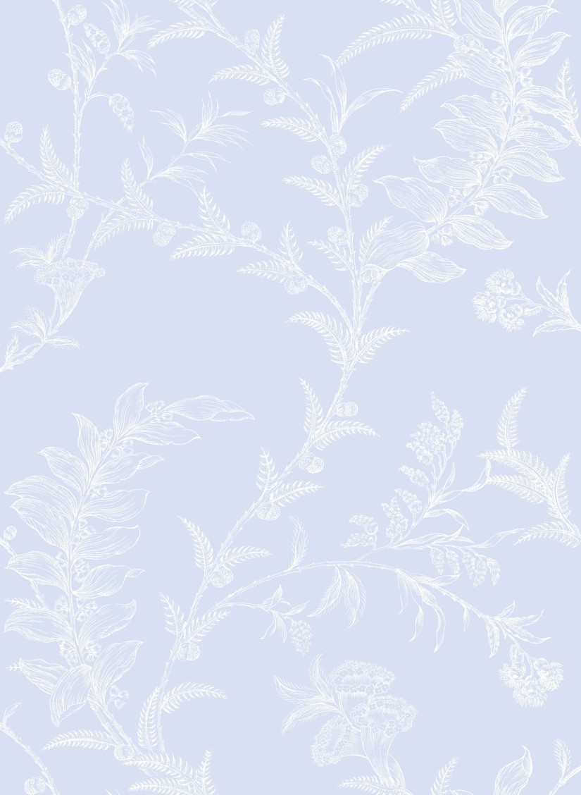 XVIII a. menantis raštas, kuriuo buvo papuoštas Viljamsburgo kolonijai sukurtas audinys. Galite rinktis iš penkių grakščiai siūbuojančių šakelių atspalvių: baltų neutraliame rusvai pilkame fone, baltų melsvai pilkšvame fone, vario spalvos gelsvame fone, sidabrinių pilkame fone ir anglies spalvos natūraliame baltame fone