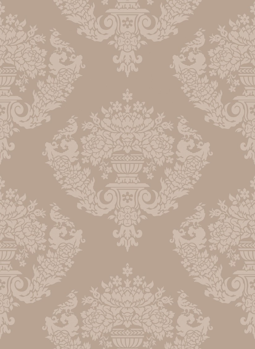 Klasikinio stiliaus tapetai su vidutinio dydžio vazų ir gėlių girliandų raštu šilką primenančiame muaro fone nuspalvinti blyškiu pilkšvu, melsvai žalsvu, rudai pilku atspalviais. Taip pat galite rinktis juodą raštą vario spalvos fone. Galite klijuoti šalia derančių tapetų „Moire“ (13051–13054)