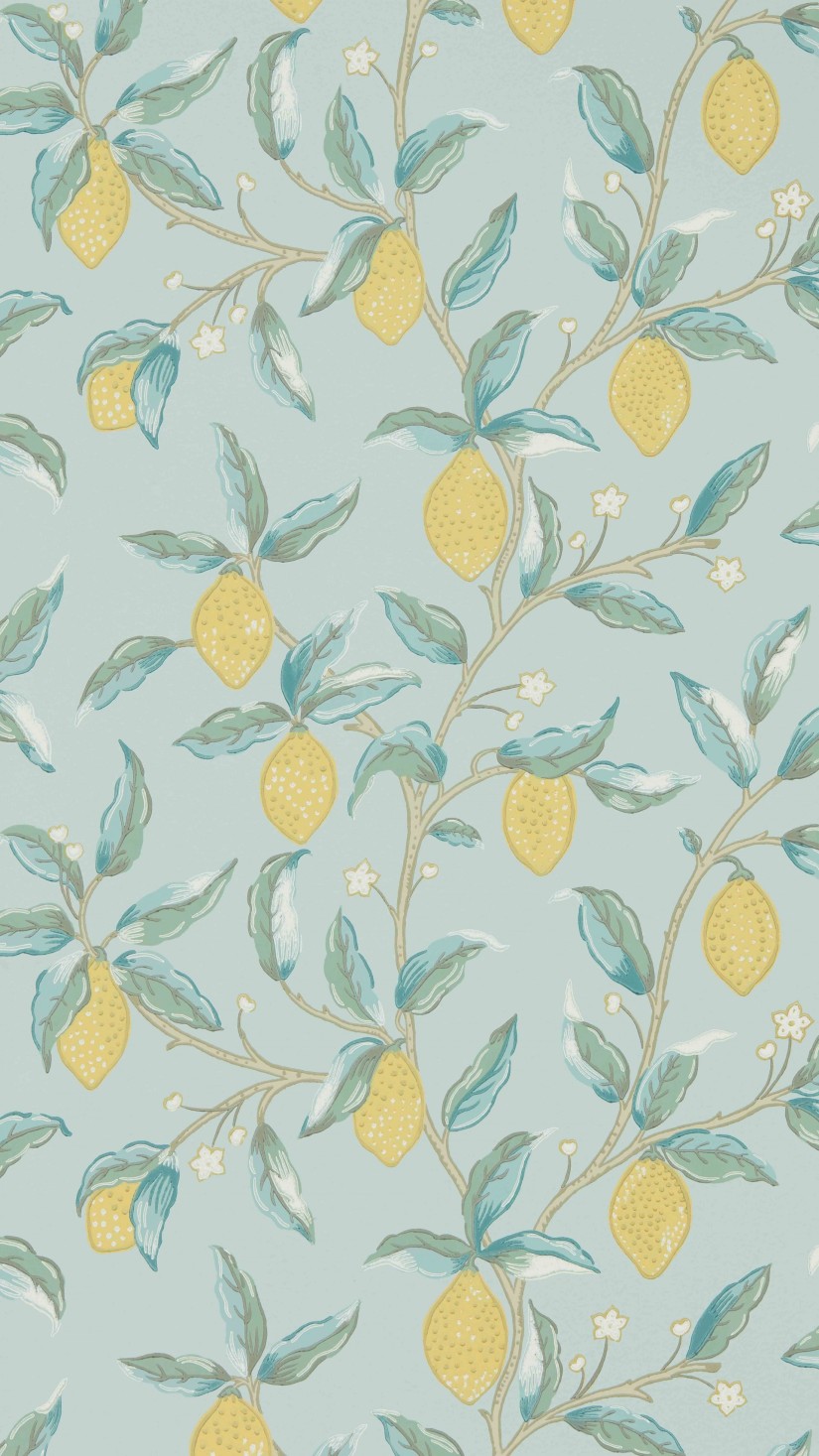 Naujai sukurtas raštas „Lemon Trees“ įkvėptas vieno Williamo Morrisso labiausiai mėgstamų tapetų raštų „Fruit“ vaizduojančio citrinas. Gaivus ir raminantis dizainas, vaizduojantis citrinų vaisius, besivejančias citrinmedžio šakas ir žiedus. Galima rinktis iš trijų atspavių: „Bayleaf“, ,,Sage“ ir „Wedgewood“
