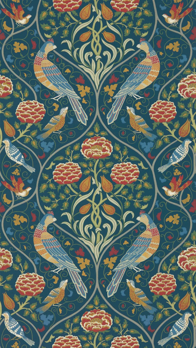 Pavadinimas rodo, kad šio tapeto rašto kūrimą įkvėpė siuvinėtų panelių rinkinys, vaizduojantis metų laikus kuriuos sukūrė ir tikriausiai išsiuvinėjo May Morris apie 1895–1900 m. Dabar „Seasons by May“ tapetų raštas, papuoštas stilizuotomis rožėmis, tulpėmis, veidrodinėse lapų, stiebų ir gėlių grotelėse. Galima rinktis iš trijų spalvų.
