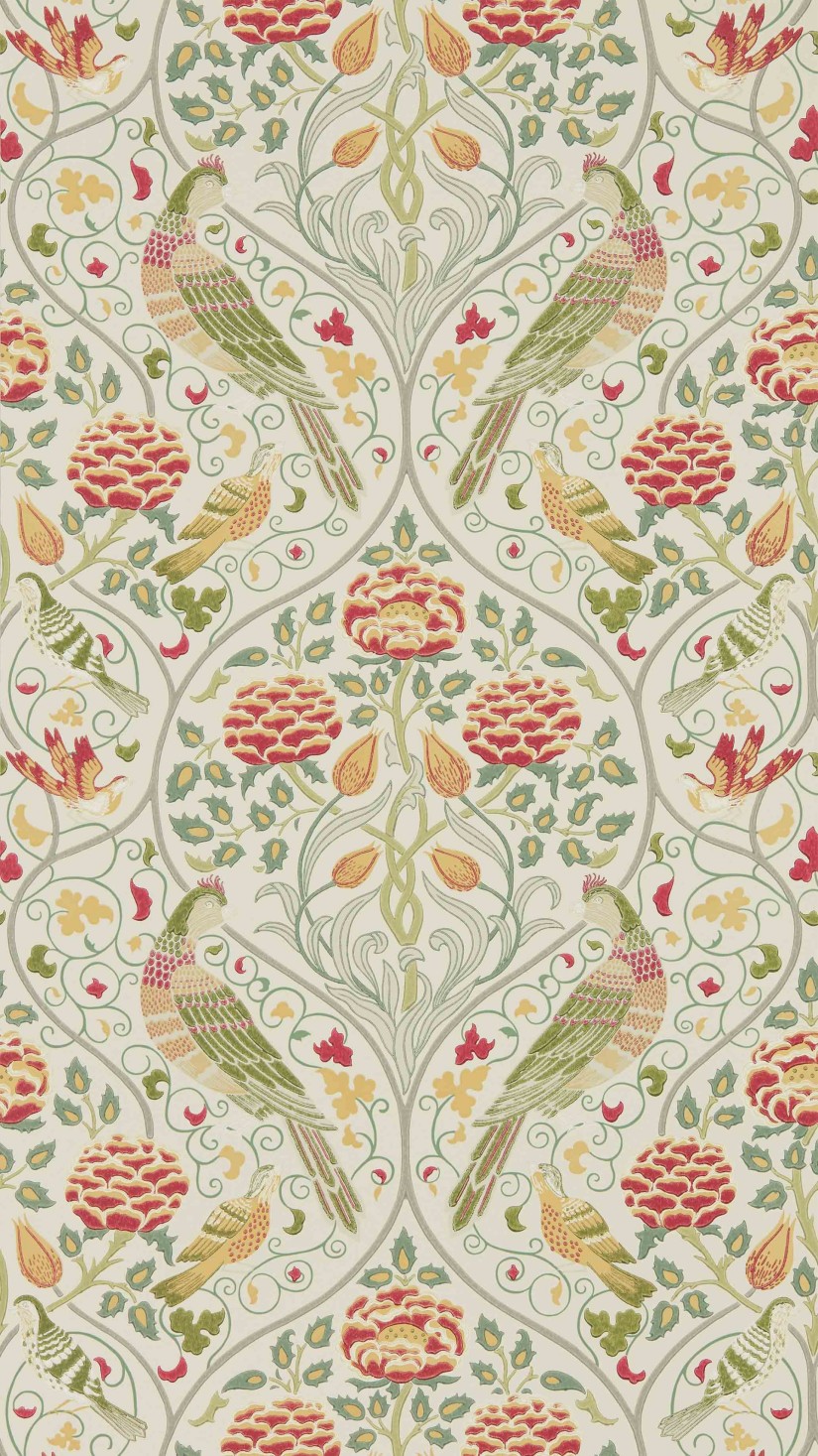 Pavadinimas rodo, kad šio tapeto rašto kūrimą įkvėpė siuvinėtų panelių rinkinys, vaizduojantis metų laikus kuriuos sukūrė ir tikriausiai išsiuvinėjo May Morris apie 1895–1900 m. Dabar „Seasons by May“ tapetų raštas, papuoštas stilizuotomis rožėmis, tulpėmis, veidrodinėse lapų, stiebų ir gėlių grotelėse. Galima rinktis iš trijų spalvų.