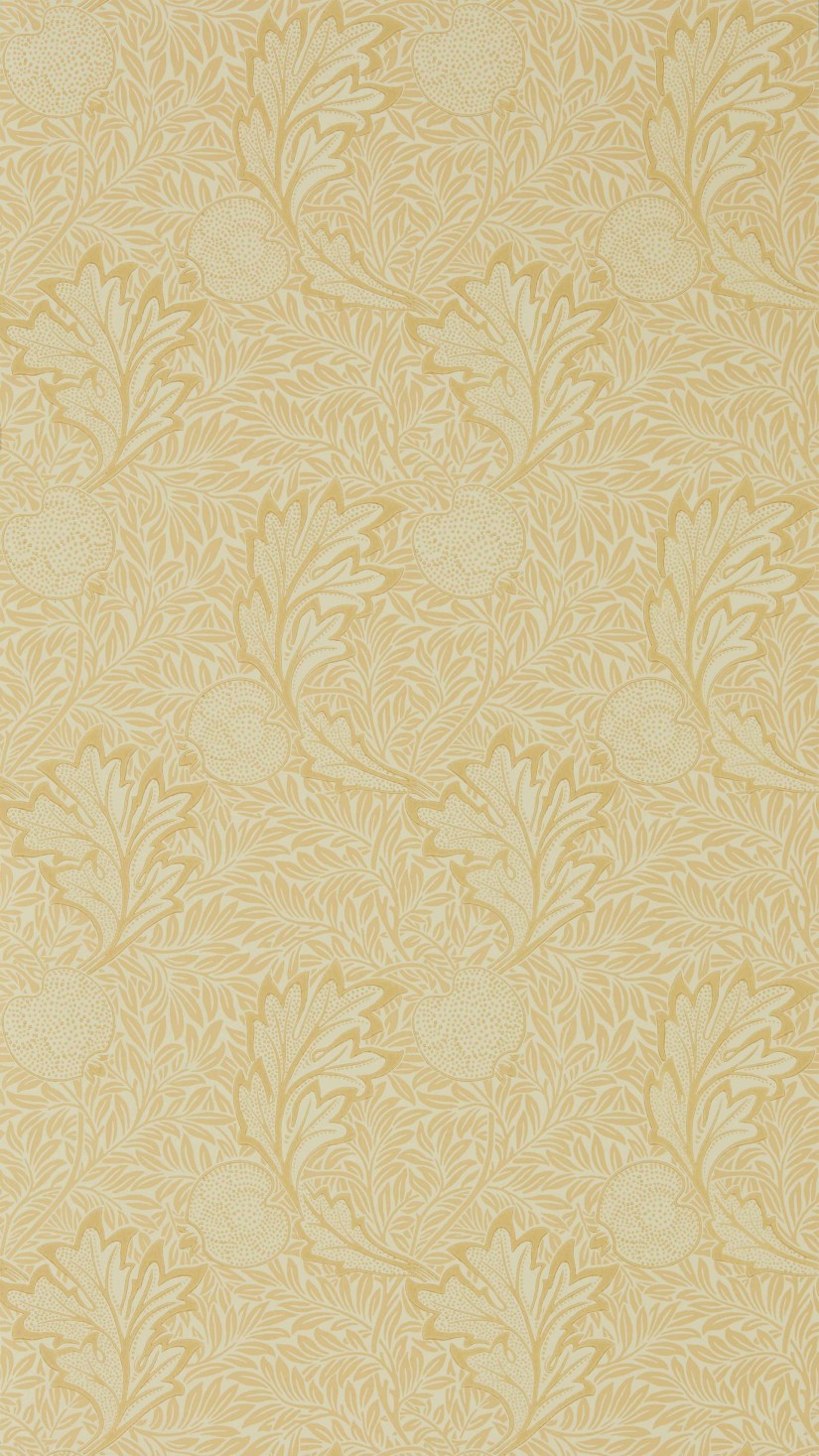 Šiame rašte vaizduojami besigarbanojantys akanto lapai ir dėmėti vaisiai. Williamas Morrisas šį raštą sukūrė 1877 m. ir juo ištapetavo May Morris darbo kambarį jo Hammersmith namuose. Gražus blokinis spausdinimas tapetui „Apple“ suteikia subtilių detalių. Raštas atkurtas penkiais naujais spalviniais variantais.
