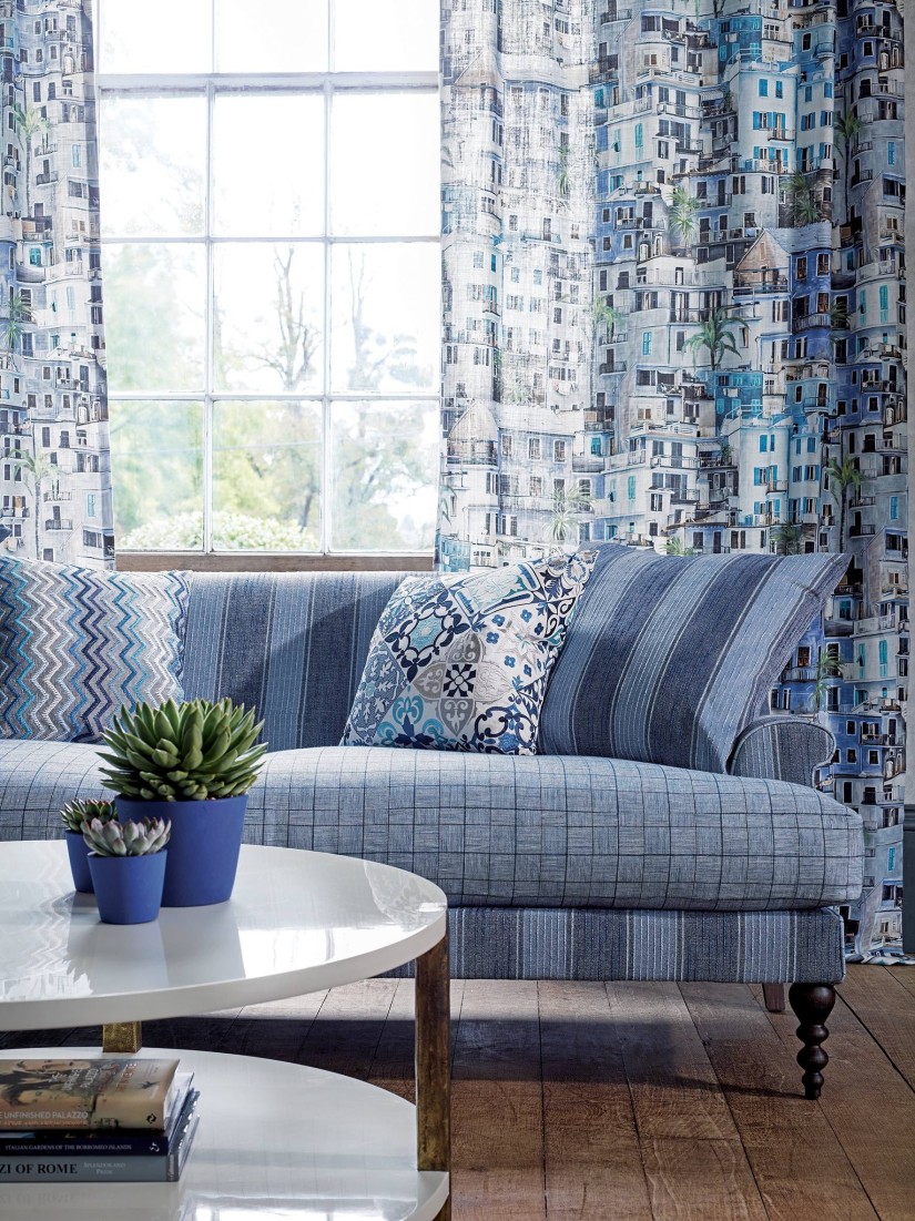 Tai Ligūrijos regionui būdingas vaizdas – drauge su palmėmis į jūrą žvelgianti virtinė spalvotų, užvertomis langinėmis ir terakotinėmis čerpėmis išpuoštų namų. Atspausdinta ant gryno lino.\r\n