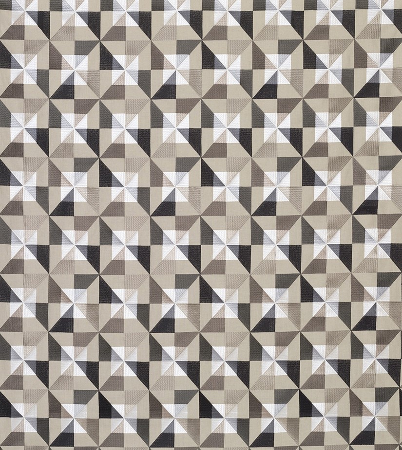 Viskozės siūlais ant lino išsiuvinėti trikampiai motyvai primena spalvotas bures. Busana – tai menininkų kaimelis netoli Ligūrijos sienos su Prancūzija.