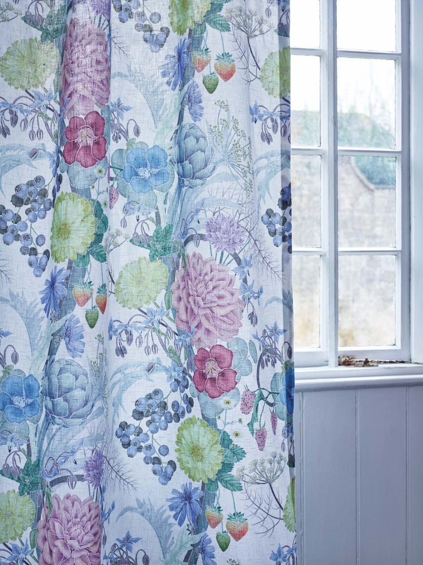 Jurginų, aguonų, uogų, builių ir dekoratyvių artišokų puokštė, atspausdinta ant plataus peršviečiamo audinio, kurį galima skalbti. Pavadinta ant Komo ežero kranto esančio sodo pavadinimu.