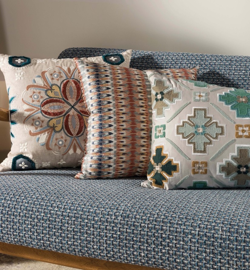 Reljefiškai ant satino pagrindo išsiuvinėti spalvotų rombų raštai. „TARBOUCHE“ – tai tradicinės Maroko gyventojų kepurės pavadinimas.