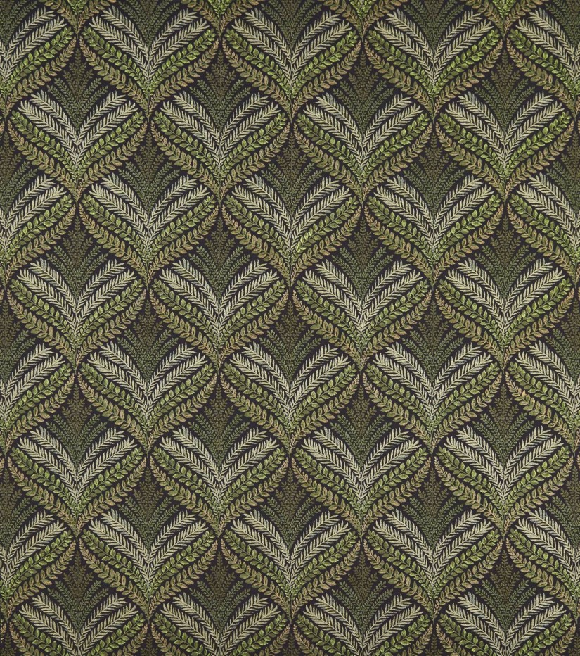 Paparčio lapai, išdėstyti simetriškomis formomis, yra išsiuvinėti į metmenis panašiomis siūlėmis ant lininio pagrindo.