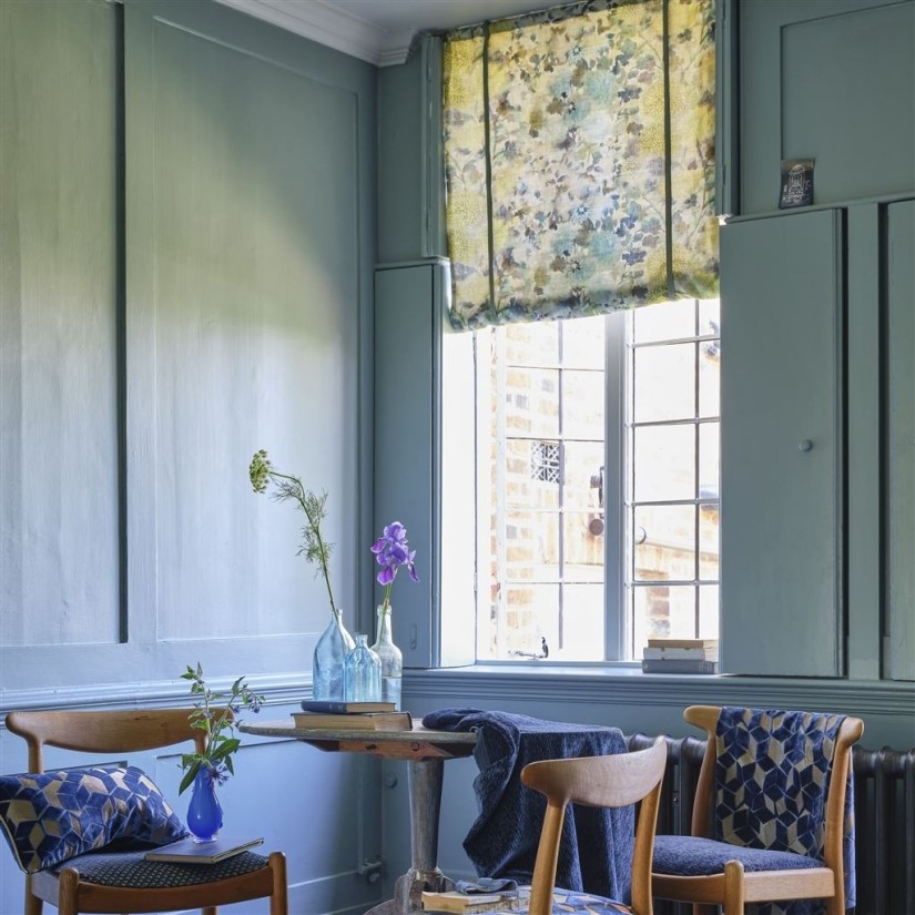 Gražus gėlių raštas su akvarelės chrizantemomis, kurios gražiai įsilieja į pintą lininę žemę. Šis margintas daug lino turintis audinys yra atspausdintas skaitmeniniu būdu ir tobulai tinka apmušalams, užuolaidoms, pagalvėlėms ir žaliuzėms. Trys skirtingi spalvų deriniai.