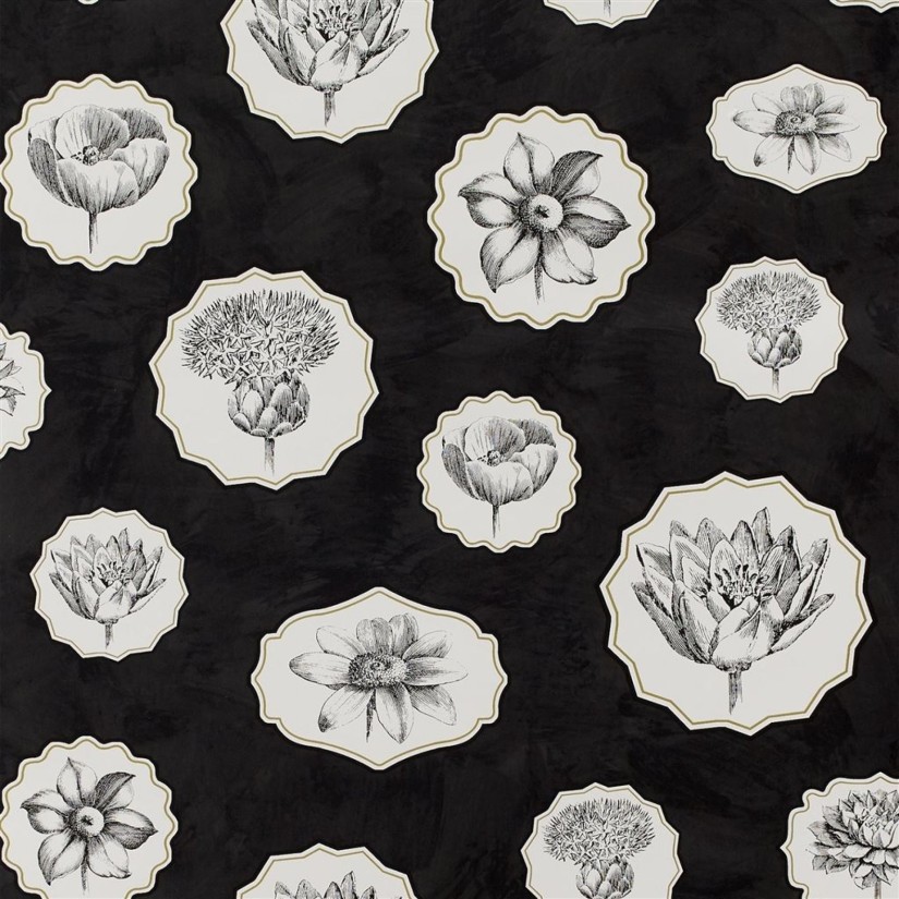 Spalvingame fone įvairiose formose įrėminti rankomis išpiešti įmantrūs gėlių motyvai. Šie puikūs tapetai sukuria iliuziją, tarsi ant sienos būtų iškabinėtos keraminės lėkštės, jie puikiai tinka „Christian Lacroix“ stiliaus interjero fonui. Raštas išspausdintas ant lygaus neaustinio pagrindo, galima rinktis iš šešių universalių spalvų derinių.