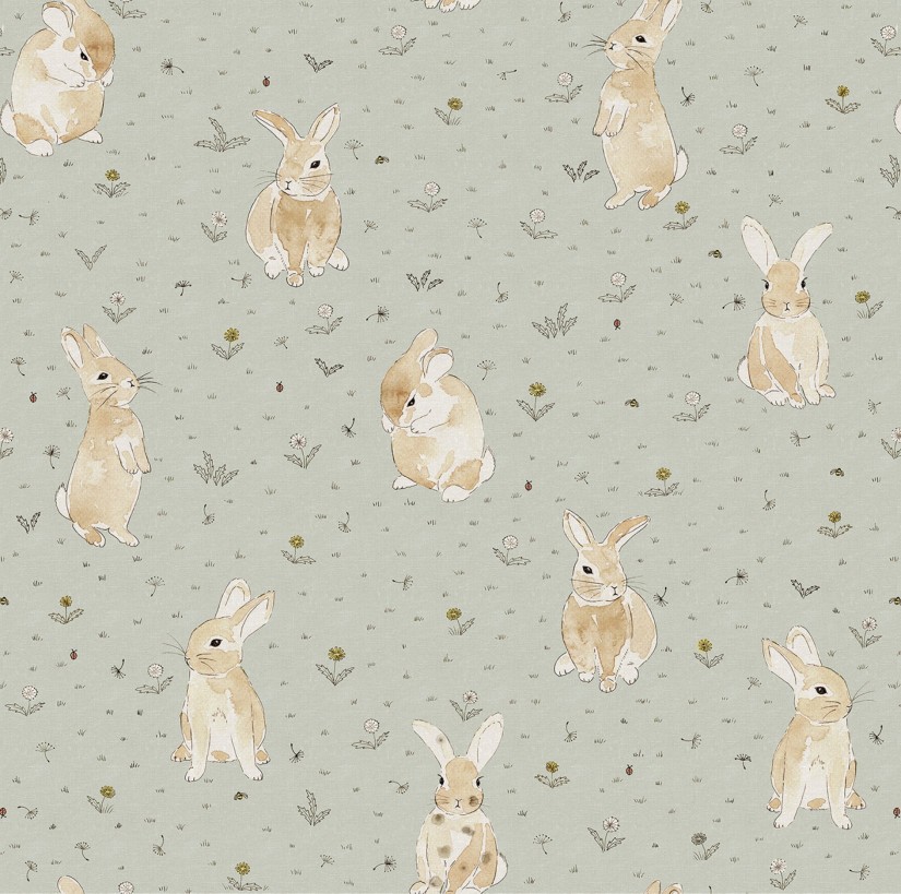 Smalsus zuikis. „Bunny Field“ –tai svajinga akvarelė, vaizduojanti tarp sultingų kiaulpienių lapų ir boružėlių žaidžiančius mielus zuikius. Pats mieliausias vaikų kambario akcentas.