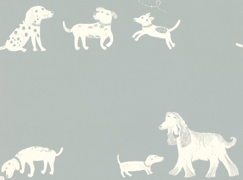 Tapetai šunų mylėtojams. Nuotaikingame vaizdžiame rašte žaidžia įvairiausi šunys – nuo taksų iki pasišiaušusių šunyčių. Kiekvienas šuo turi savo charakterį ir savitą stilių.