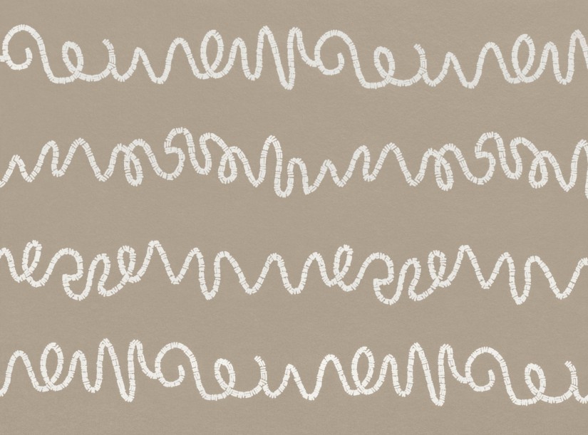 Žaismingos vingiuojančios linijos besikraipydamos susiveja į horizontalią juostą. Šiam abstrakčiam raštui panaudoti siuvinėtų dirbinių „Wiggles“ motyvai. Tapetai pagyvinti blizgiomis detalėmis.