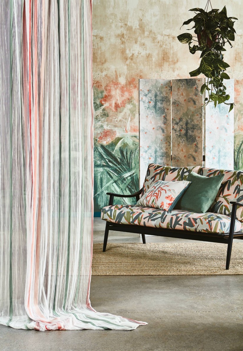 Ši gyva kompozicija, kurioje vaizduojama abstrakti oranžerijos scena, nutapyta pasitikinčiais ir entuziastingais teptuko potėpiais ir užfiksuoja organišką bei laukinę spontaniškai augančių augalų natūrą. Šiuose įspūdinguose 3 m aukščio tapetuose tapybiškos žolės mainosi su debesis primenančiais švelnių pastelinių spalvų fragmentais.