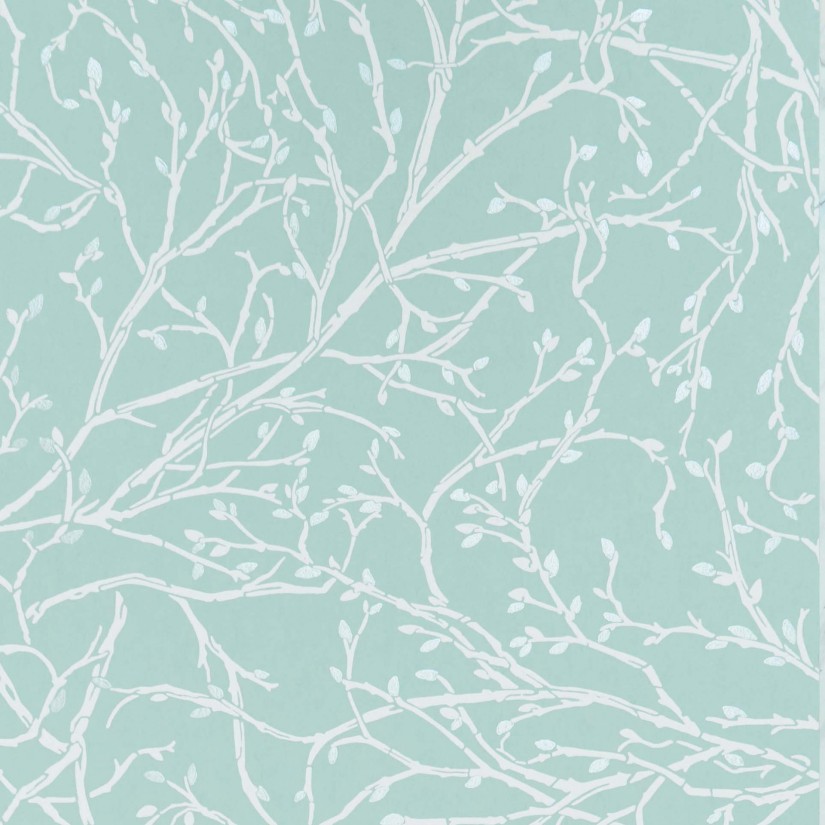Tapybiškas susipynusių šakelių su pumpurais raštas, padailintas metalo atspalvio arba kontrastuojančiais elementais.