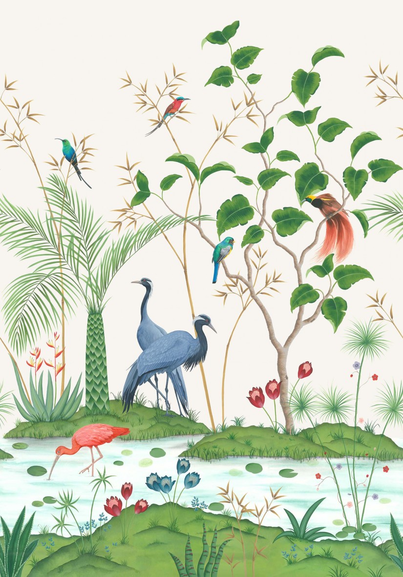 Rojaus sodas, kuriame braido raudonas Ibis, stebimas gervių ir egzotiškų paukščių medžiuose. Originalus dienos šviesos spalvinis variantas yra atspausdintas ant tradicinio neaustinio pluošto pagrindo ir taip pat ant prabangaus natūralia žole dengto pagrindo. Kiti spalviniai variantai atspausdinti ant neustinio pluošto ir atspindi paros laiką: vėsi šviesa prieš aušrą, švelnūs skaistūs tonai saulėtekio metu ir prieblandos bliuzas.