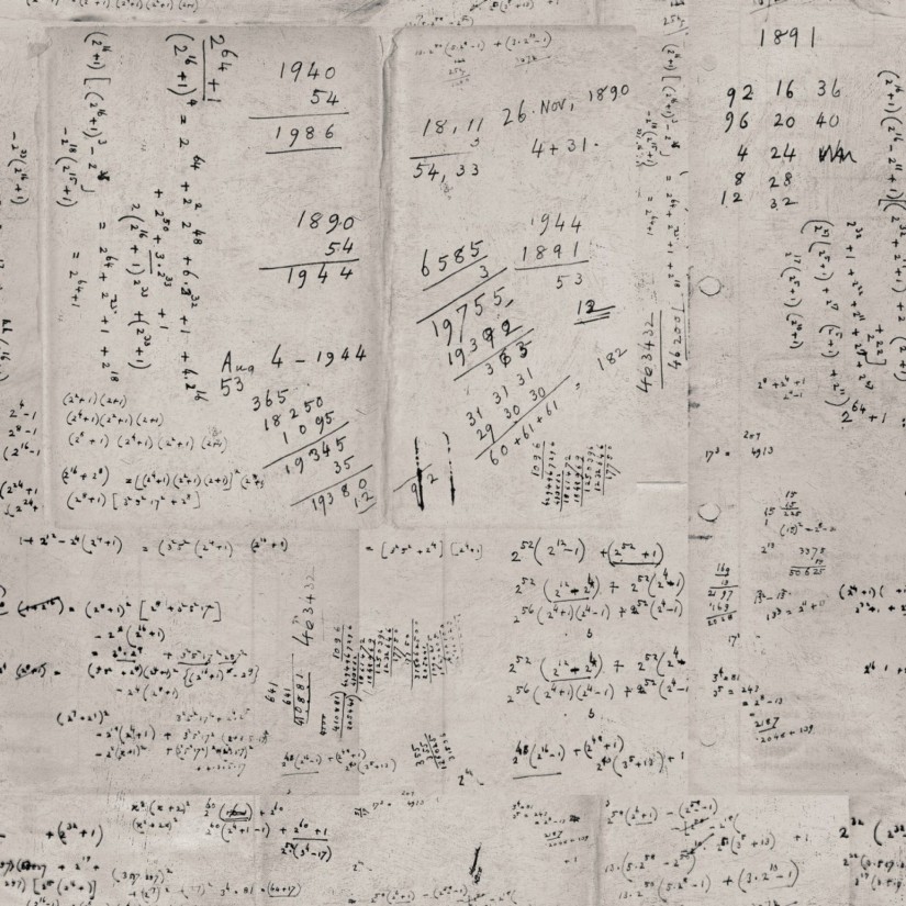 Intriguojanti ranka rašytų matematinių formulių ir skaičiavimų kolekcija.