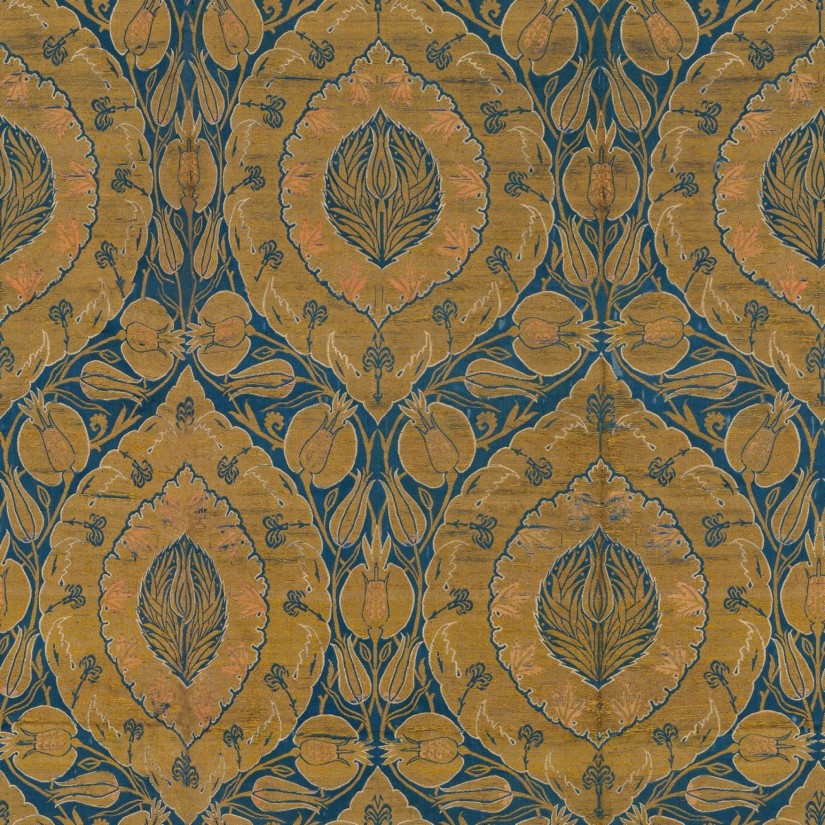 Prabangūs senovės Mesopotamijos audinių įkvėpti ryškių spalvų, formų ir gamtos elementų tekstūros tapetai.