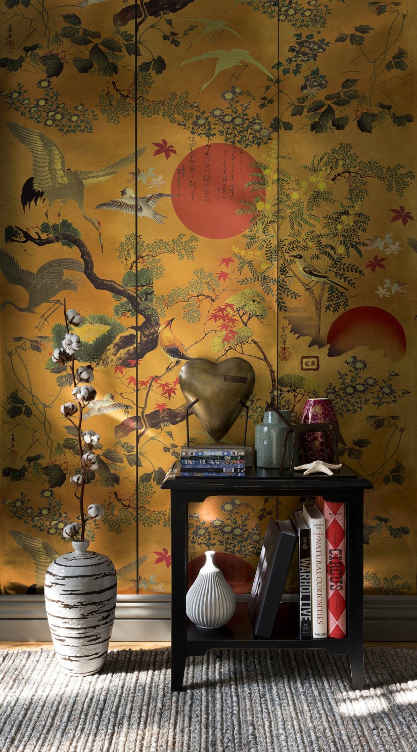Įtaigus ir prabangus tradicinis japonų dizainas, atspausdintas and metalizuotos folijos, kuri sukuria išskirtinę ir atpalaiduojančią atmosferą. Viename rulone - 3 juostos, kurių plotis - 0,49m, ilgis - 3m.
