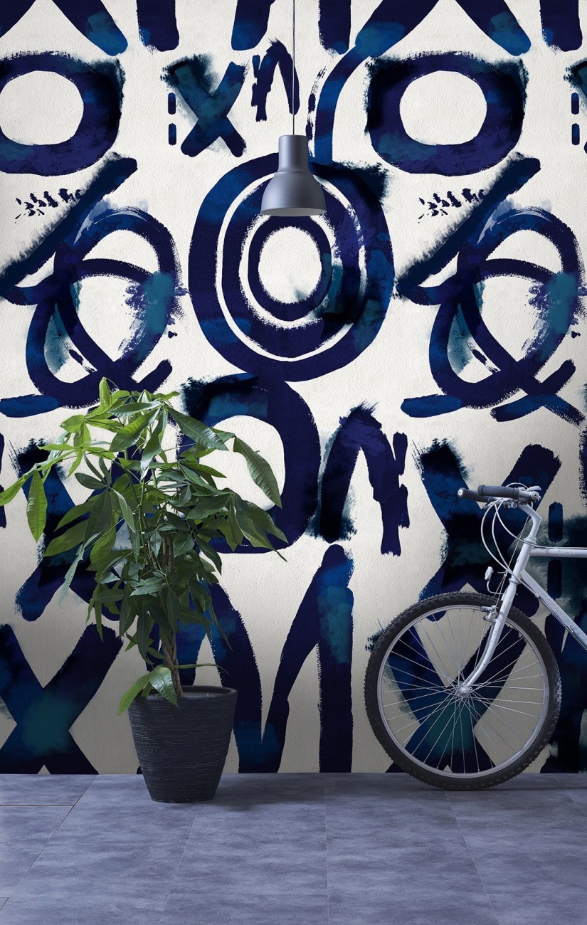 Įdomi kompozicija baltame fone su ryškiomis mėlynomis juostomis. Šie nuostabūs abstraktūs tapetai suteiks teigiamų mėlynų akcentų bet kokiai aplinkai.