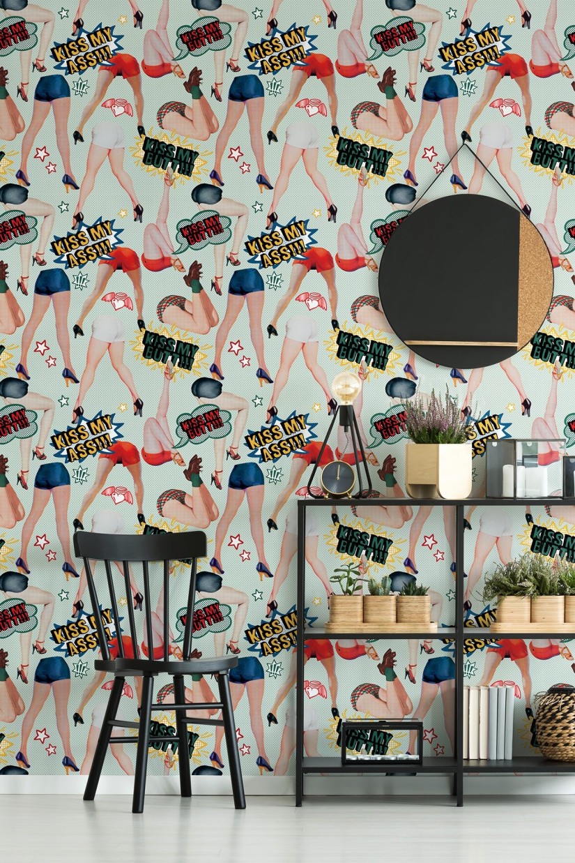 Humoristinis dizainas, kuris yra dar vienas pagrindinis poparto elementas. Šie tapetai tikrai sukels šypseną bet kuriame interjere.    DĖMESIO! MINDTHEGAP tapetai parduodami pakuotėmis. Vienoje pakuotėje yra 3 juostos, kurių išmatavimai 52 x 300 (h) cm, jomis padengiamas 4,65kv.m plotas.