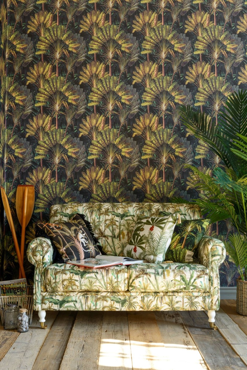 Puikūs atogrąžų raštai, įkvėpti vadinamosios keliautojo palmės (Ravenala Madagascariensis), augančios būtent Madagaskaro regionuose. Įvairūs žali ir rudi atspalviai bei stulbinančios palmių lapų detalės tamsiame fone sukuria stulbinančią ir rafinuotą atmosferą. Galima įsigyti du variantus: saulėlydžio ir neutralios spalvos.